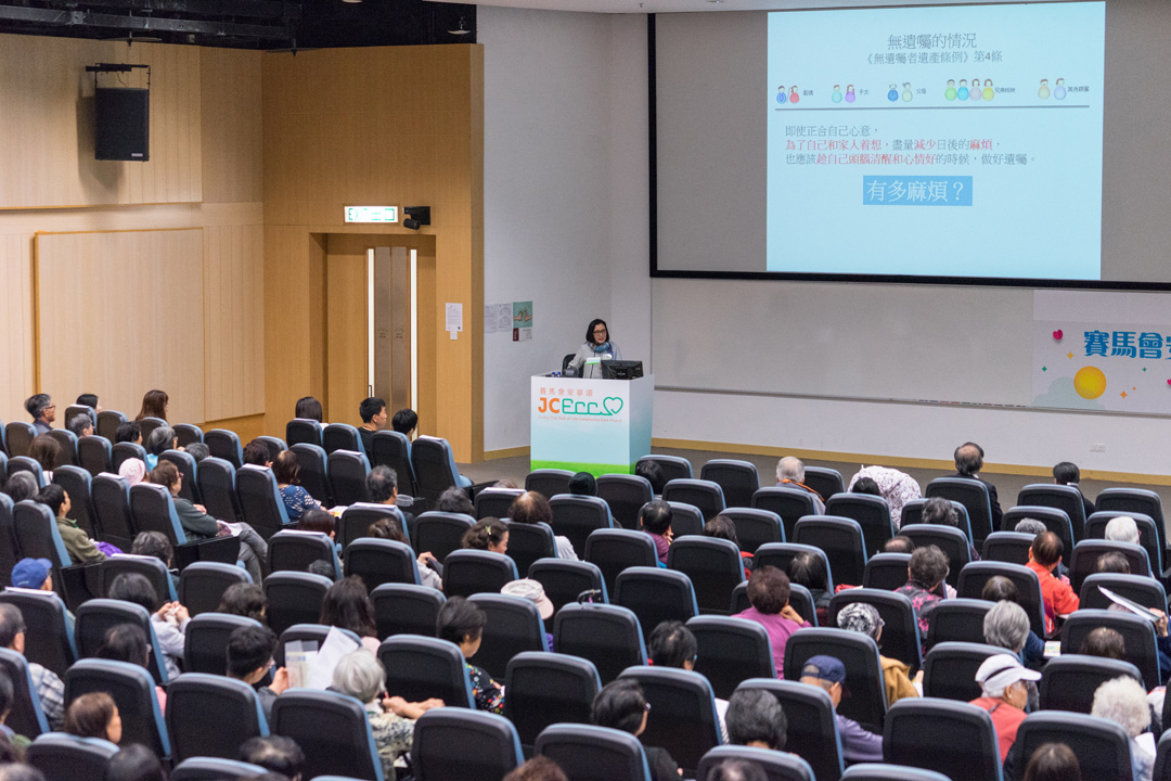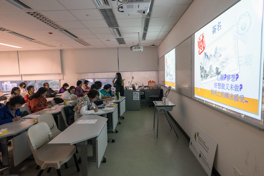 The CUHK Jockey Club Institute of Ageing organized a public event on End-of-Life Care education on 24 March 2018 at Yasumoto International Academic Park, The Chinese University of Hong Kong with enthusiastic response. During the talk, Ms. Angelina Luk (Solicitor and Notary Public of Hong Kong) spoke on the topic of “How to make a will?” and Dr. Jenny Lee (Chief of Service, Department of Medicine & Geriatrics in Tai Po Hospital) introduced “What are Advance Care Planning and Advance Directive?” 327 people joined the event and over 300 people participated in the five interactive workshops (Micro Movie and Talk on Advance Care Planning, EOL care planning handbook making, Horticulture with Life and Death education and Zentangle with Life and Death Education) held subsequently. |