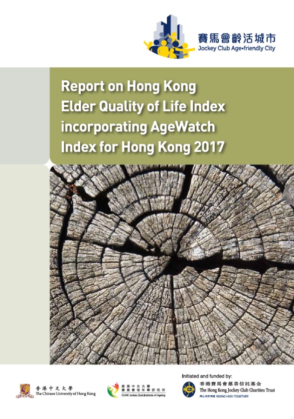 To prepare for the continued ageing of the population in Hong Kong, there is a pressing need to assess the well-being of local older people to assist in formulating effective policies to address this socio-demographic change in Hong Kong. The Chinese University of Hong Kong Jockey Club Institute of Ageing, in collaboration with the Centre for Quality of Life, with funding support from The Hong Kong Jockey Club Charities Trust, has been developing the Hong Kong Elder Quality of Life Index (HKEQOL), incorporating the AgeWatch Index, to assess the elderly well-being in a comprehensive manner with locally significant indicators annually since 2014 for six consecutive years.