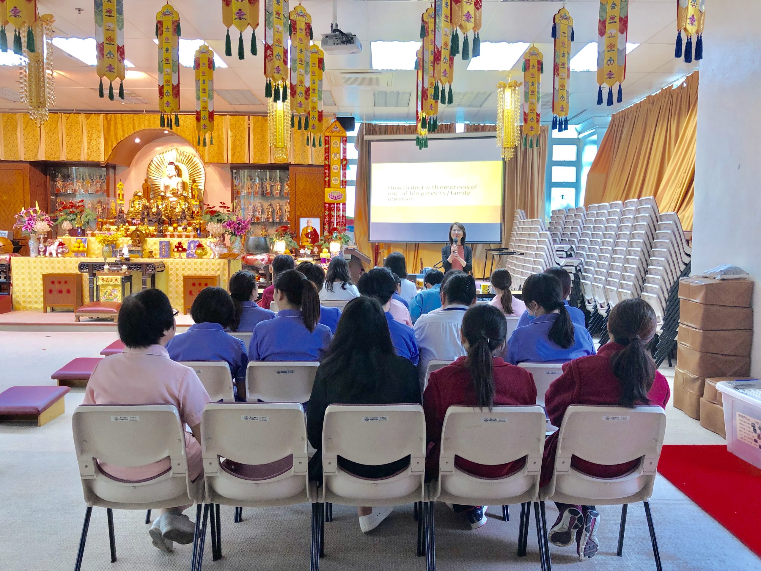Talks and information sessions covering the most fundamental concepts in end-of-life care are delivered to allied health professionals, particularly those from residential care homes. Symptom management, which is not a topic covered in the training for doctors and nurses, is specifically highlighted in these sessions in the hope of filling in the knowledge gap of this group of target participants.