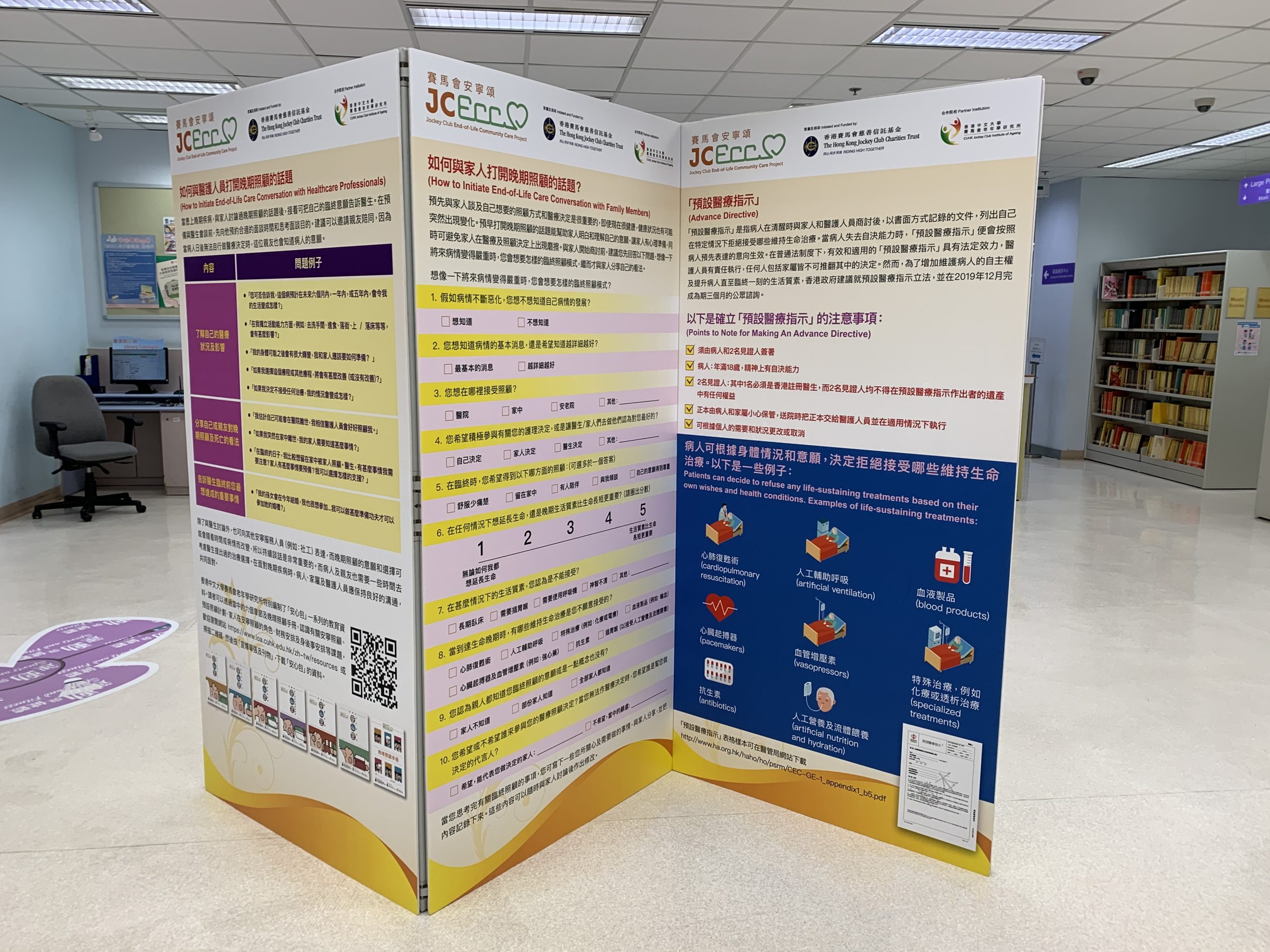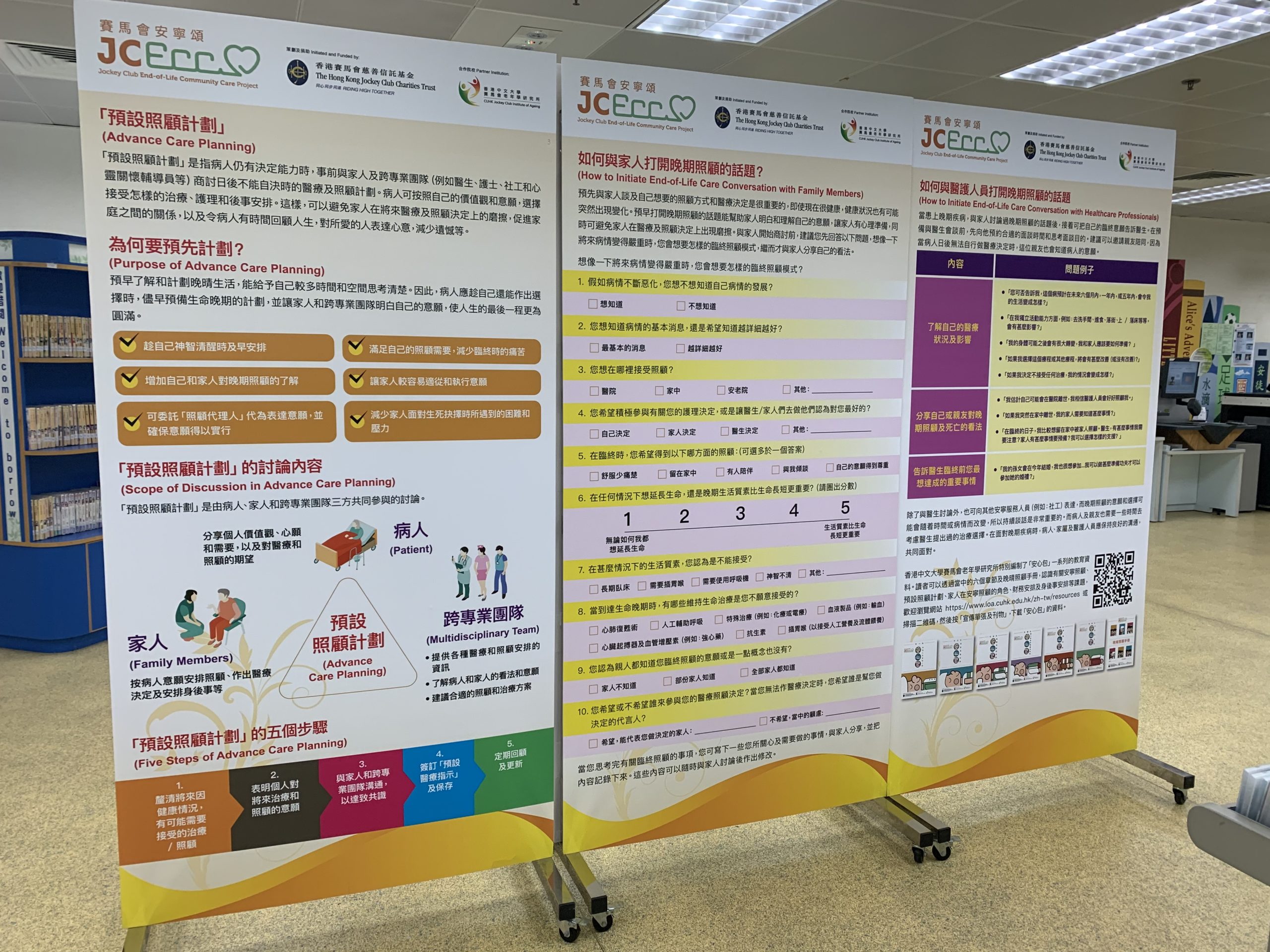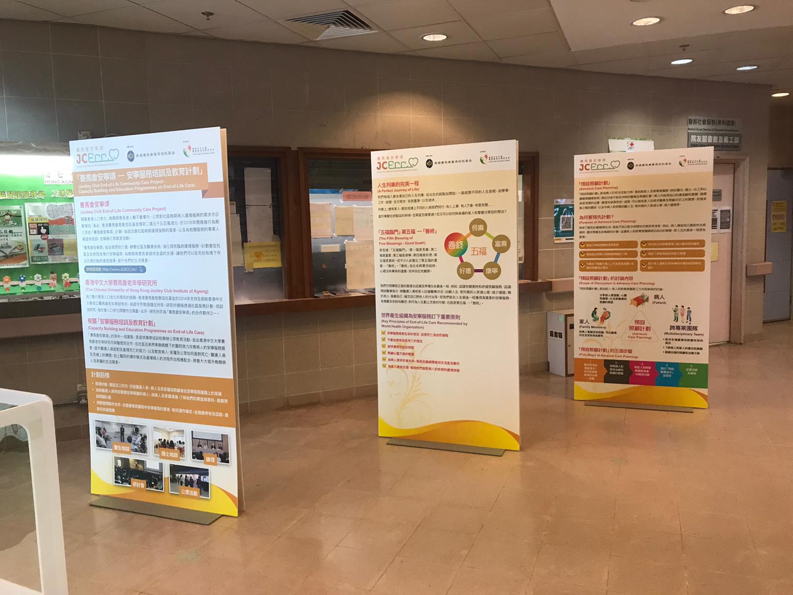 Throughout different phases of the project, roving exhibitions have been staged intermittently in various communal areas for publicizing general knowledge in end-of-life care to the passers-by, accumulating over 35,000 estimated views. Previous exhibition areas included
