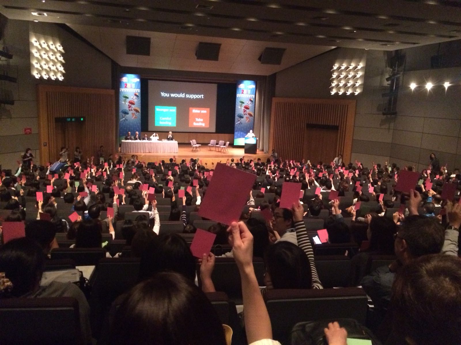Prof Lui Siu Fai, Adjunct Professor of the Institute led a session on the topic “Difficult Conversation – Interactive Case Discussion and Use of Applied Mediation Skills to Resolve Conflicts in End-of-life Care” together with experts in different fields at the Hospital Authority Convention 2018 on 8 May 2018. The session was well-received and attended by about 620 participants. Among others, a case of feeding options from the ethics casebook developed by the Institute was used for role-play and demonstration of applying mediation skills in resolving conflicts in EOL care. |