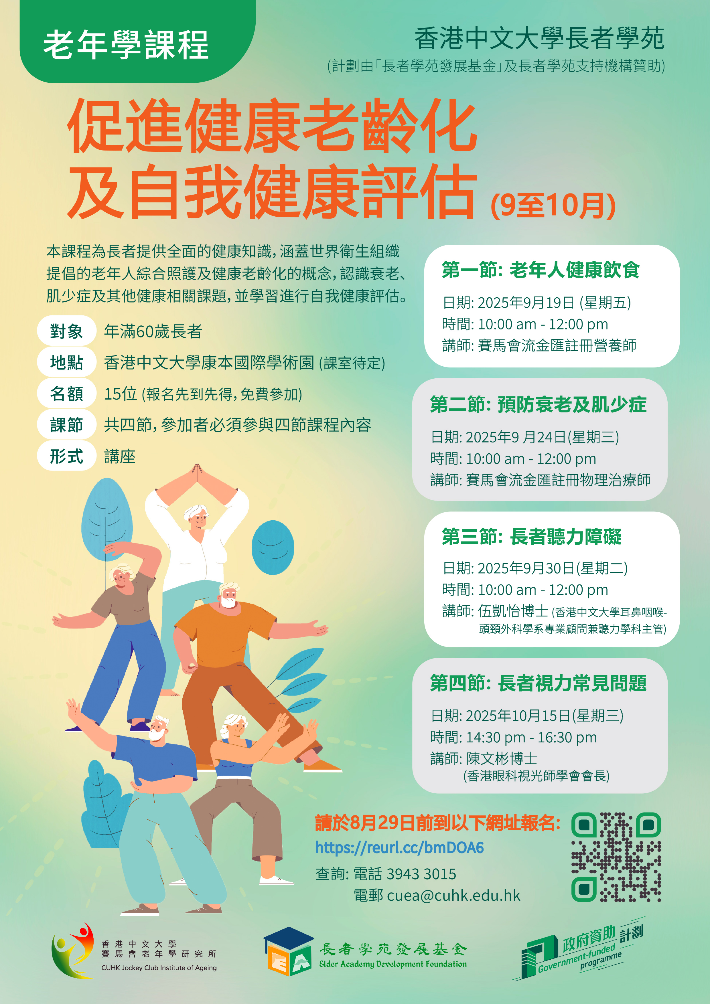 CUHK Elder Academy: 老年學課程 - 促進健康老齡化及自我健康評估 (9至10月)
