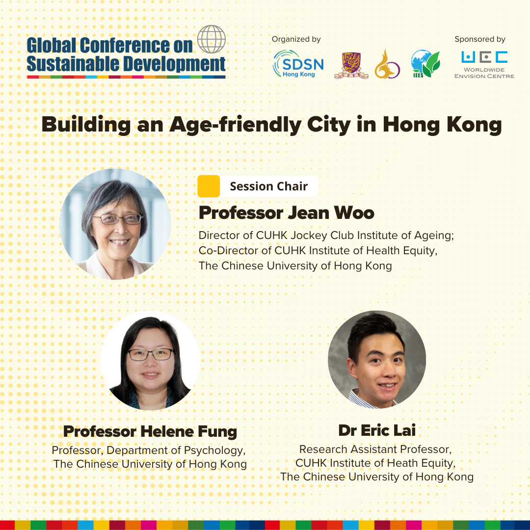 The Sustainable Development Goals are intertwined and have differential impacts on the health of people. The session will discuss the impact of climate change to older people in Hong Kong, how physical and social environment affects their unequal healthy aging and why such environment is important to building an age-friendly city in Hong Kong.