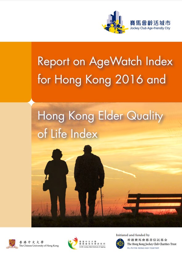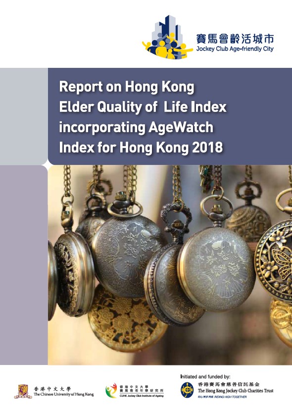 To prepare for the continued ageing of the population in Hong Kong, there is a pressing need to assess the well-being of local older people to assist in formulating effective policies to address this socio-demographic change in Hong Kong. The Chinese University of Hong Kong Jockey Club Institute of Ageing, in collaboration with the Centre for Quality of Life, with funding support from The Hong Kong Jockey Club Charities Trust, has been developing the Hong Kong Elder Quality of Life Index (HKEQOL), incorporating the AgeWatch Index, to assess the elderly well-being in a comprehensive manner with locally significant indicators annually since 2014 for six consecutive years.
